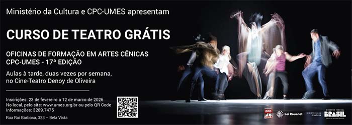 27 de fevereiro de 202617ª Edição do Curso de Teatro da UMES – Faça a sua inscriçãoO CPC-UMES apresenta a 17ª Edição do Curso de Teatro totalmente…