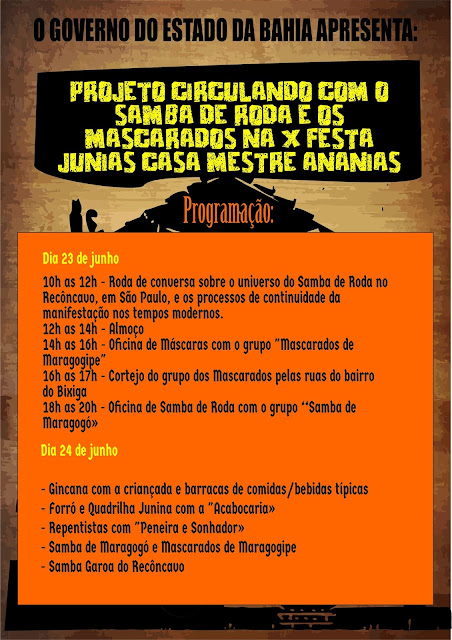 Para o povo do Samba de Roda e os que gostam de conhecer, teremos programação no sábado dia 23
